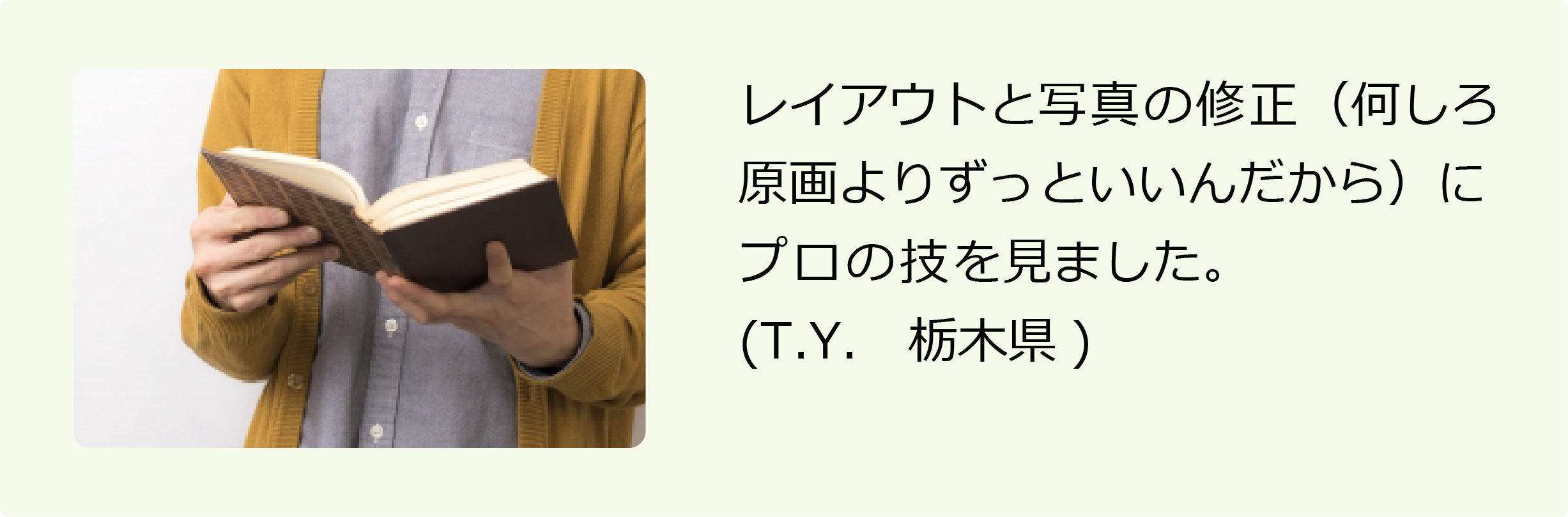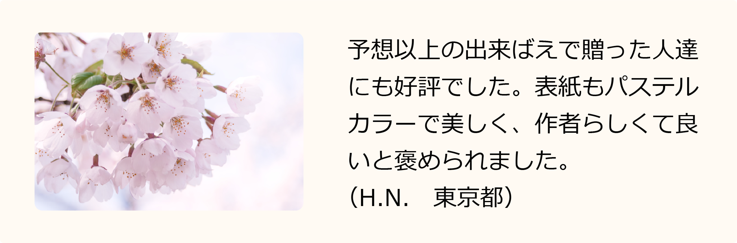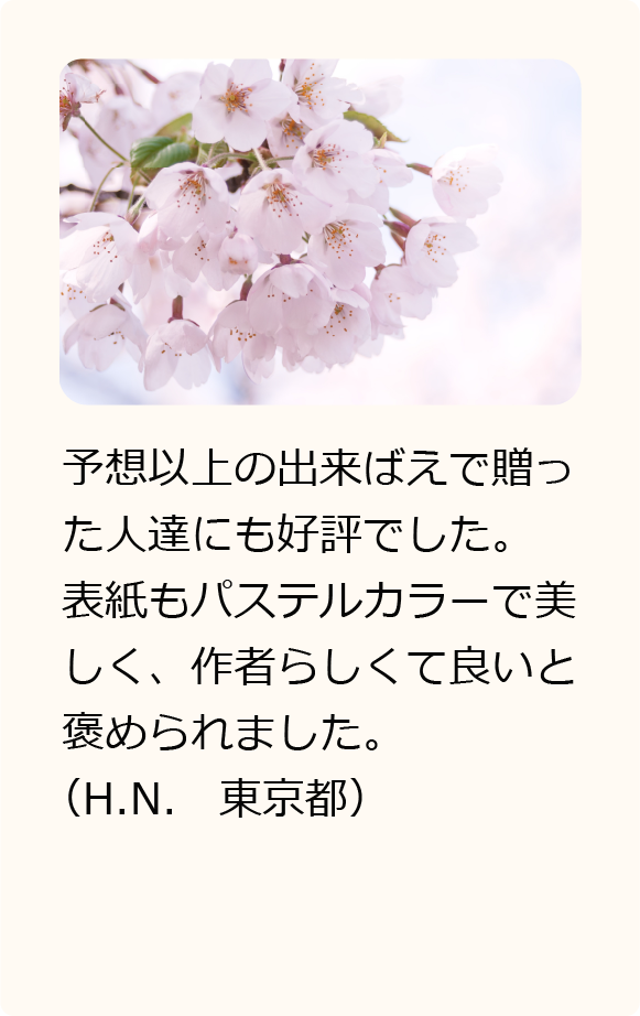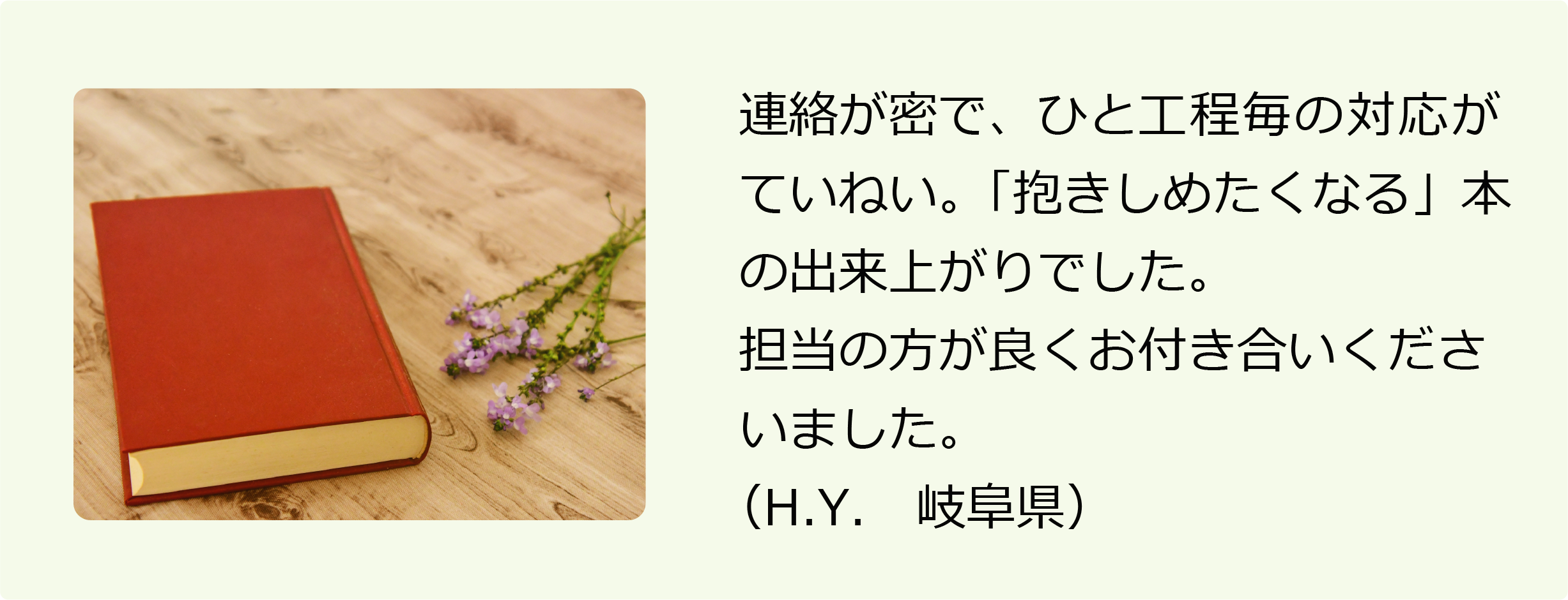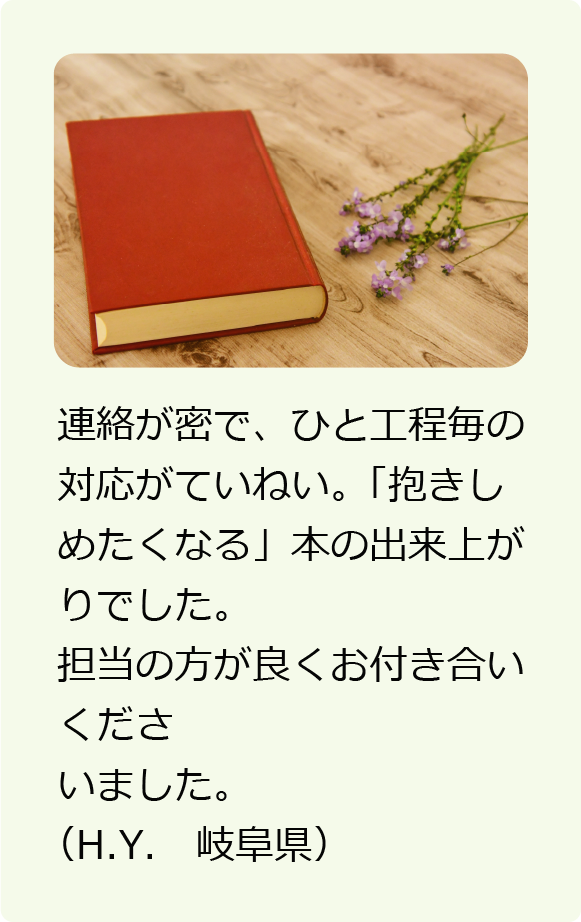 一人でも多くの方に「この本を作って本当によかった」、そう思える、世界で一冊の「抱きしめたい本」をつくっていただきたい、というのが当社の願いです。